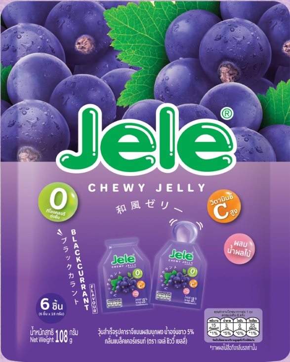 Вода питьевая 90,612%, сок из восстановленного сока белого винограда 5%, сахар 1%, фруктозный сироп 1%, желирующее вещество (Е425, 407), ароматизатор «Черная смородина», краситель (Е 129, E133).