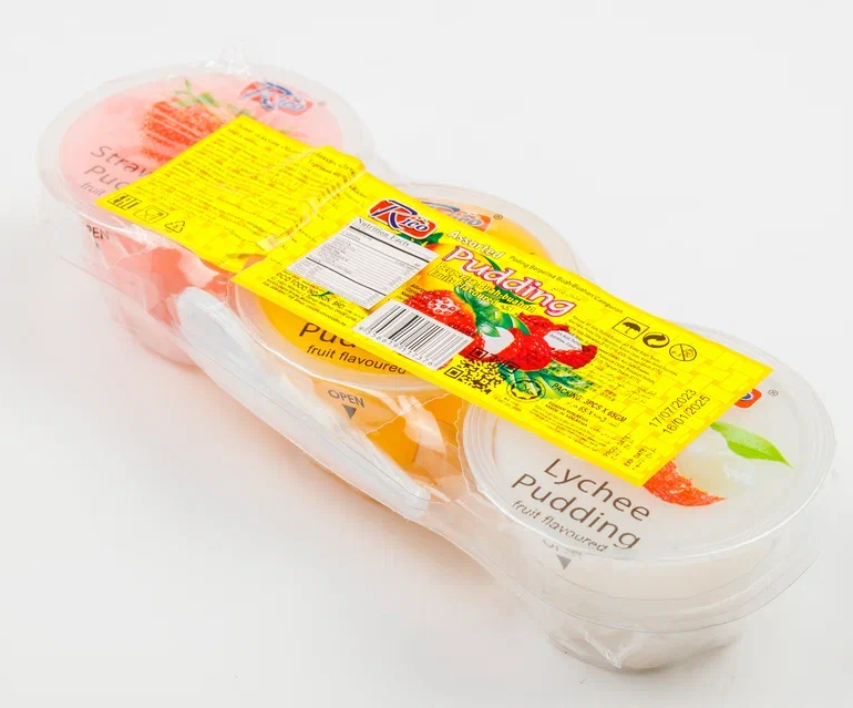 Пудинг со вкусом «Манго», «Клубники», «Личи» Масса нетто: 195г. (65г*3шт) Торговая марка: «Rico» Made in Malaysia Изготовитель: RICO FOOD INDUSTRIES SDN.BHD, № 24, Jalan Makmur 2, Taman Industri Makmur 09600, Lunas, Kedah Darul Aman, Малайзия.