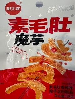 —Снек из крахмала коньяку со вкусом говяж. шкуры вегет. с пряным острым вкусом 18гр 240/8мес